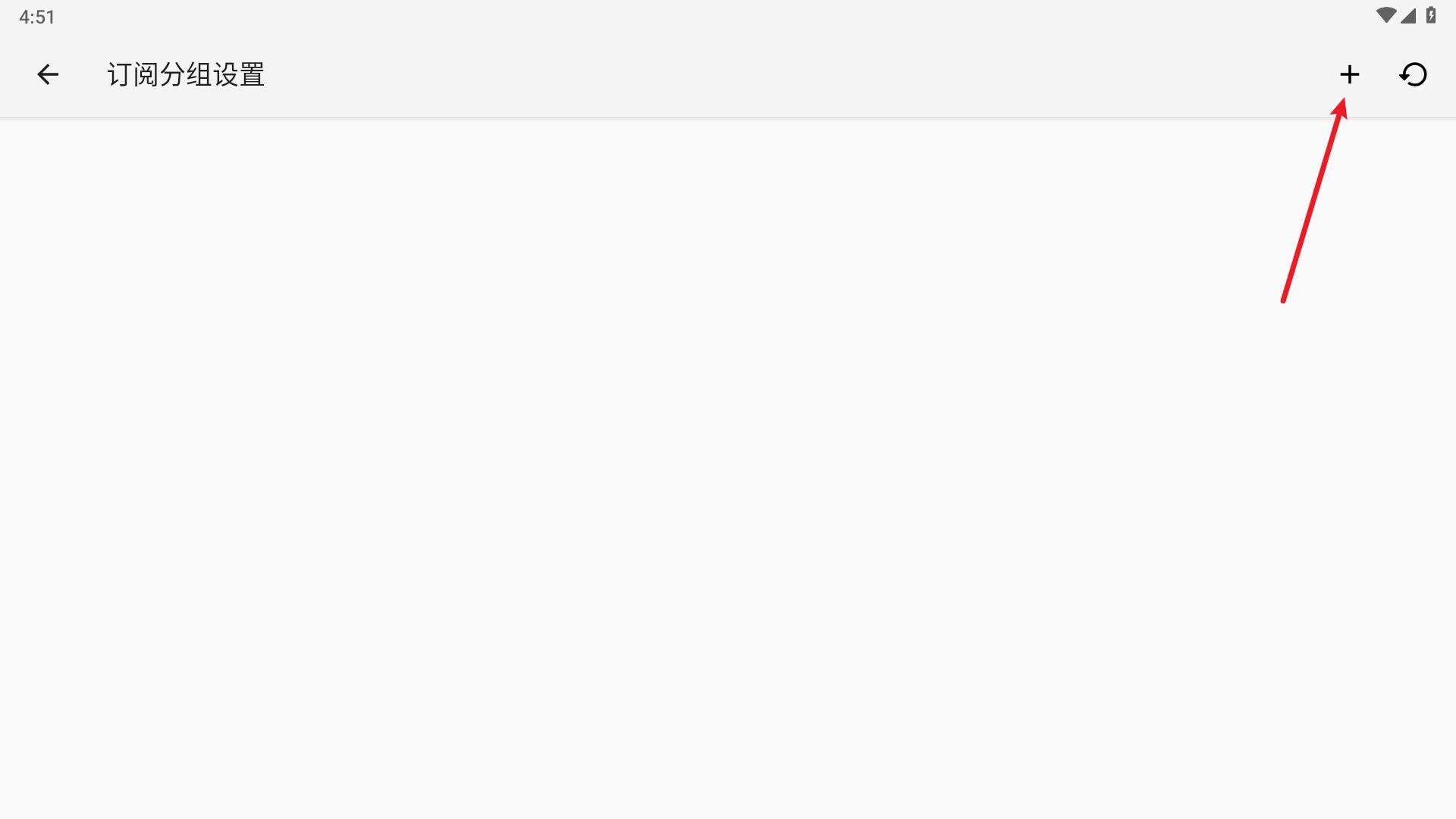 Step 2:进入应用主界面,点击右上角的“订阅”图标(通常是一个加号或链接图标)。