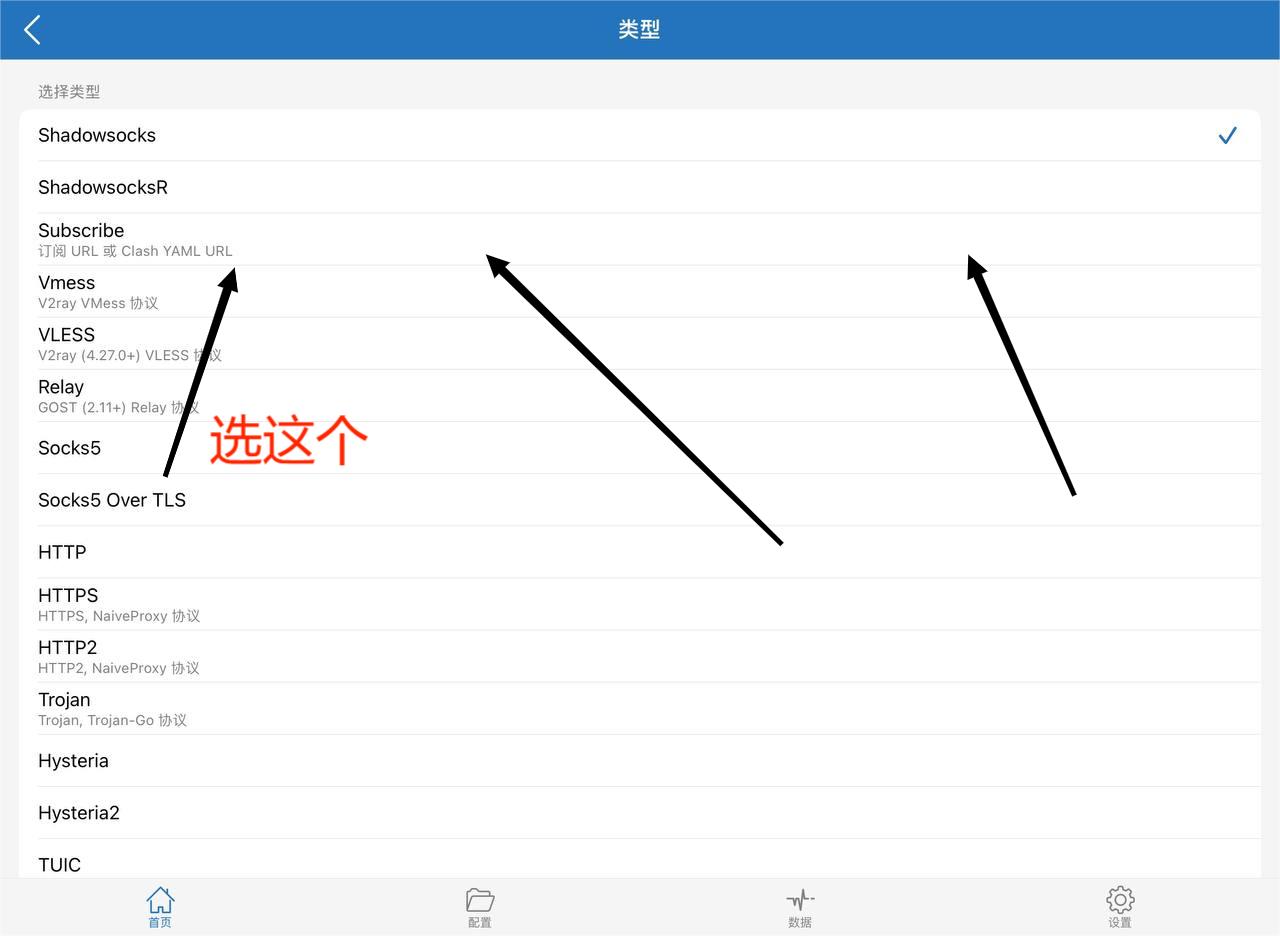 点击应用界面右上角的“+”按钮,选择“类型”为“订阅”。