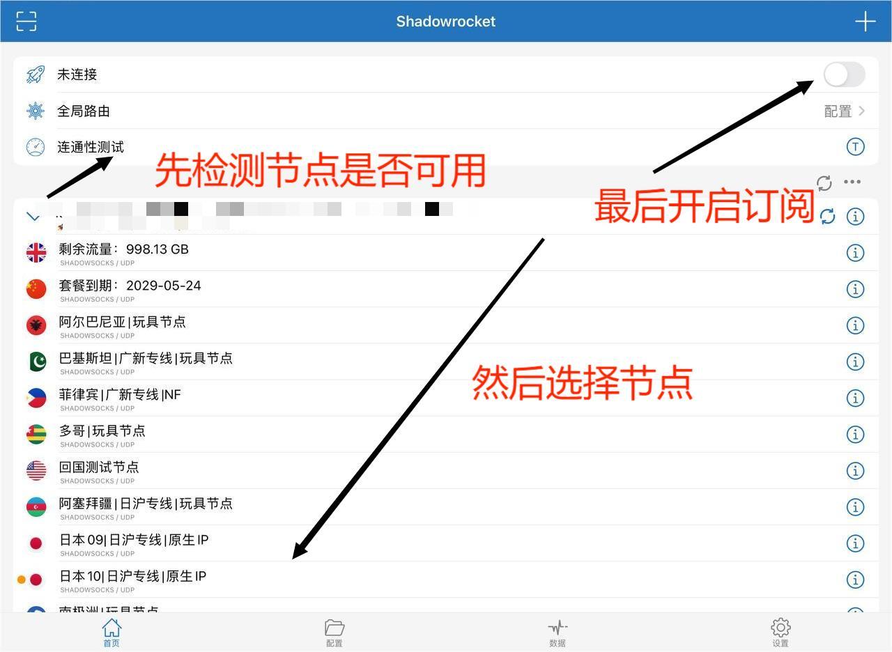 Shadowrocket 会自动从订阅地址中获取配置文件和代理节点。