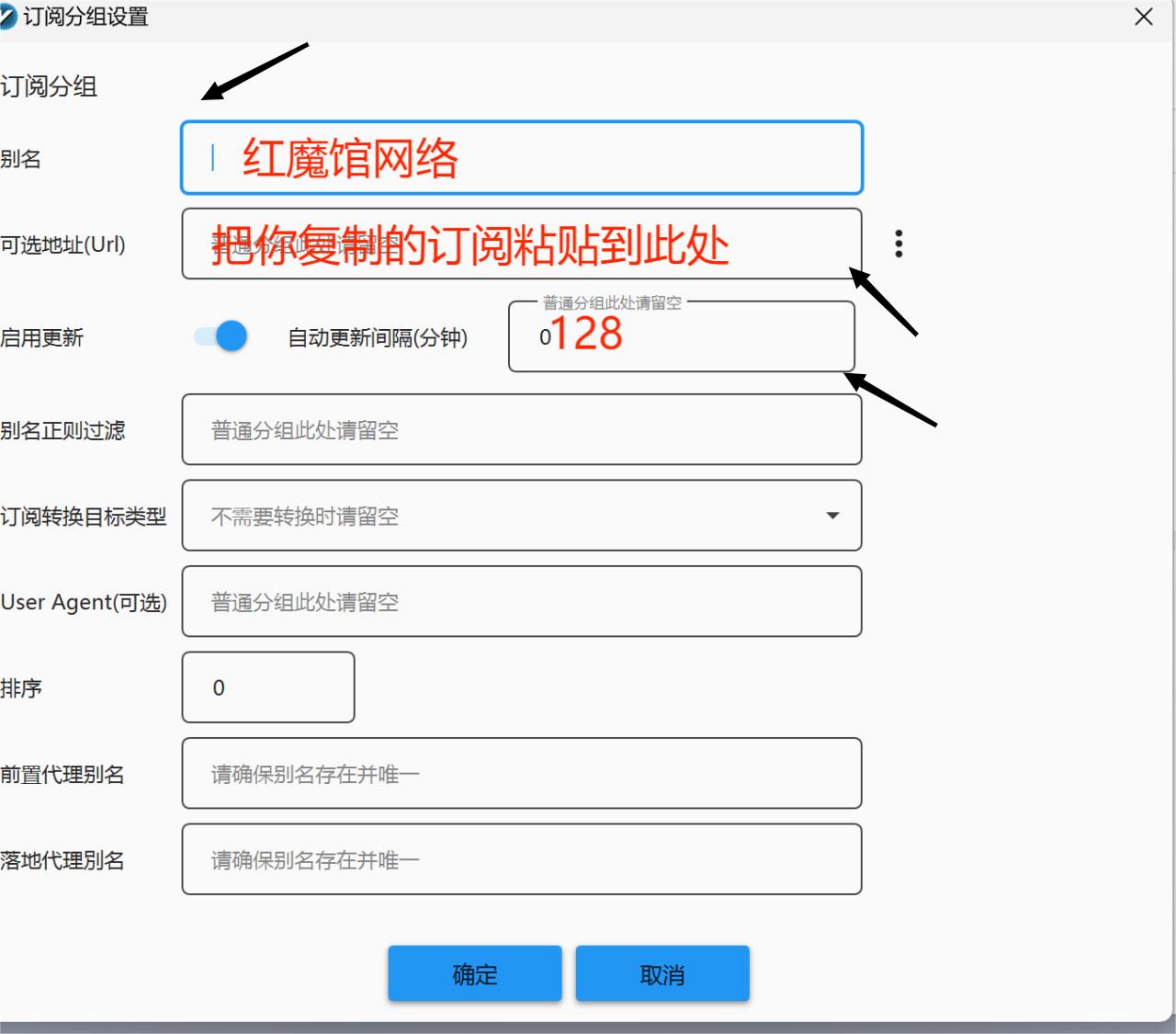 Step 3:在弹出的窗口中,点击“添加”按钮,并粘贴之前复制的订阅地址。