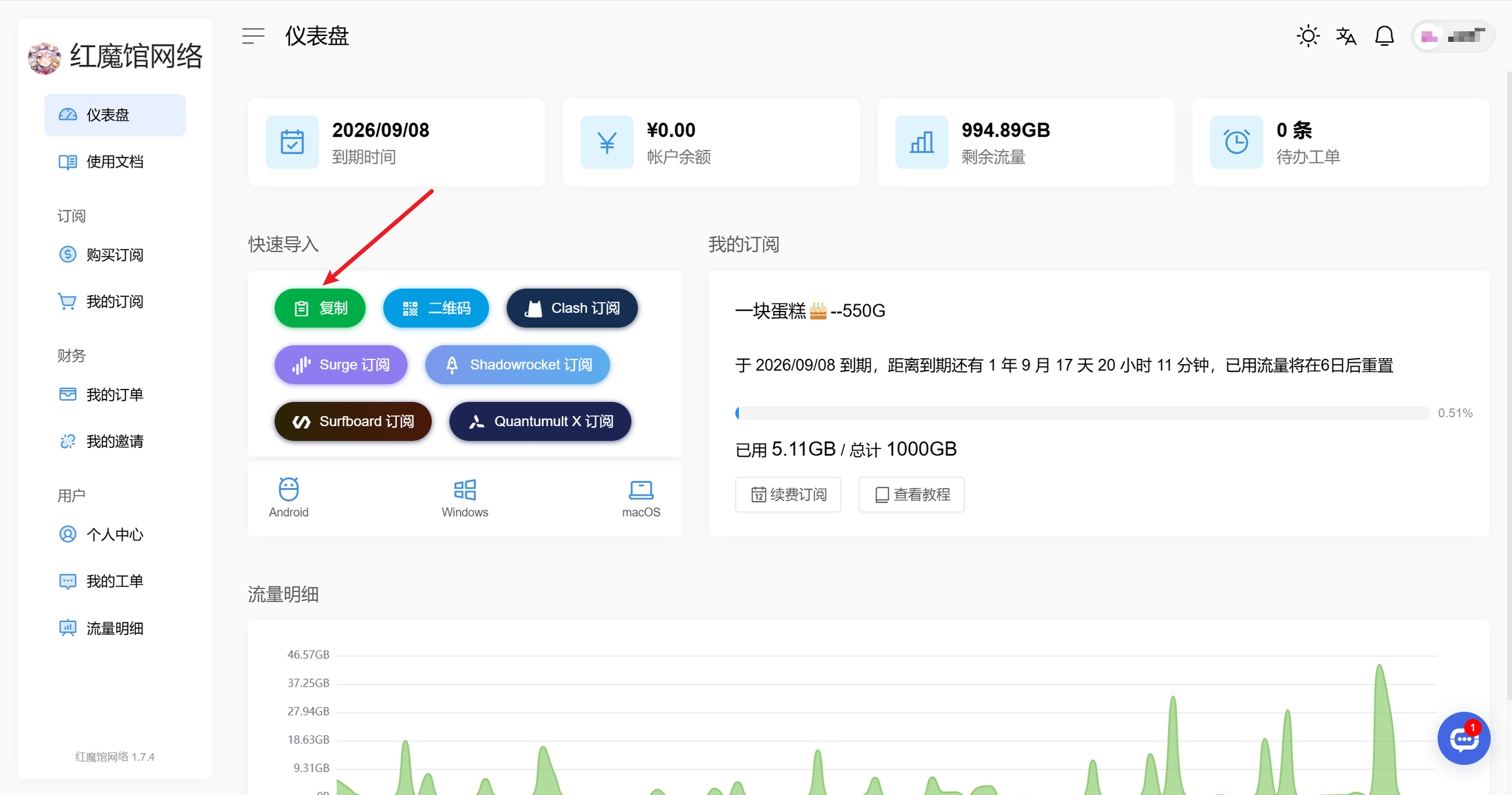 Step 2:在用户中心找到您的订阅页面,并点击“一键订阅”按钮。